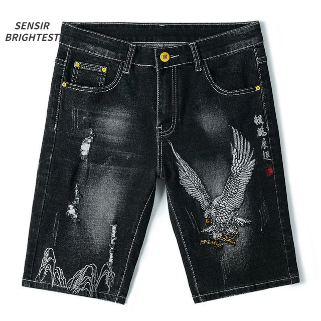 - Nome do Produto: Shorts Jeans Bordados Masculinos